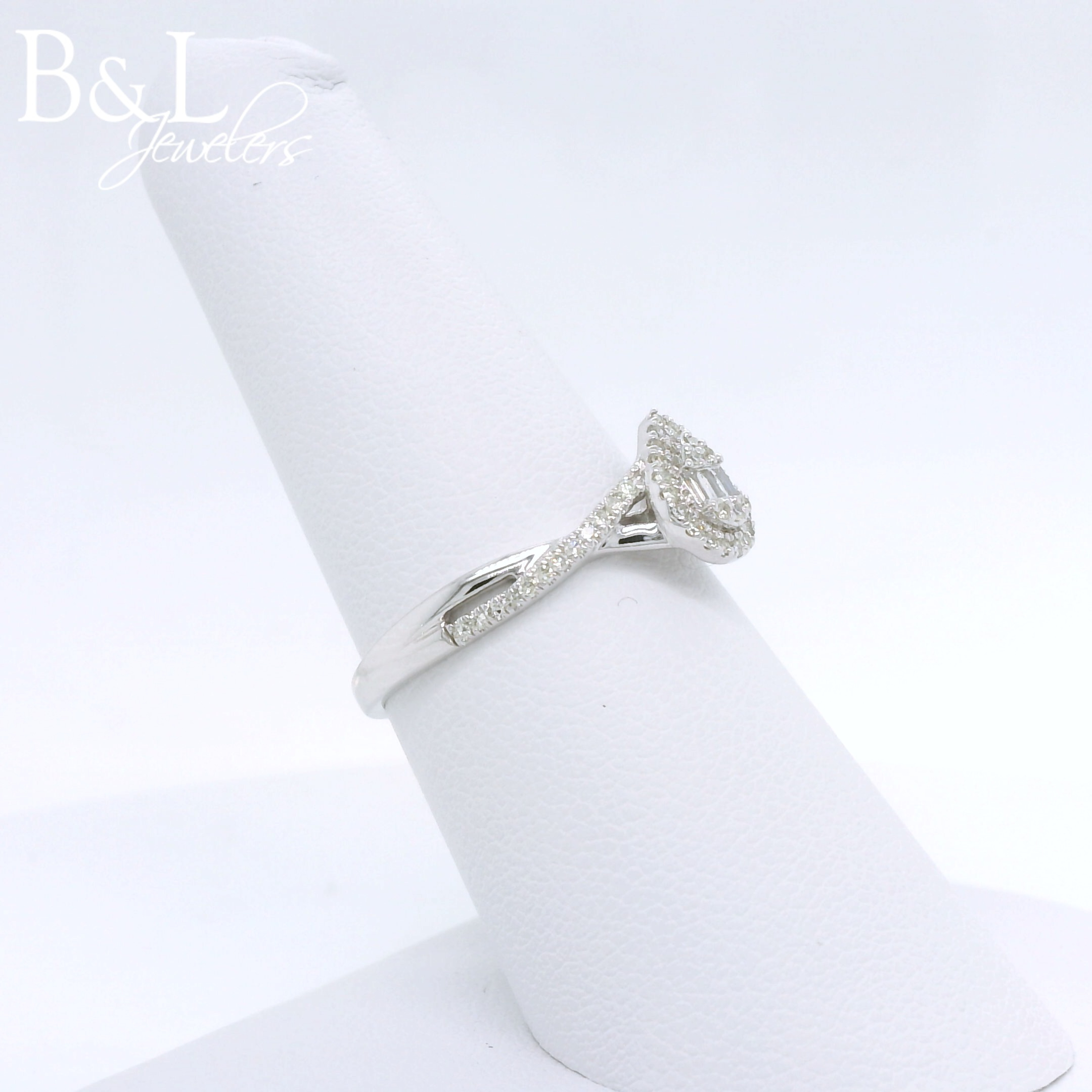 10k White Gold .25ctw Pear Halo Diamond Ring Image 3 B & L Jewelers Danville, KY